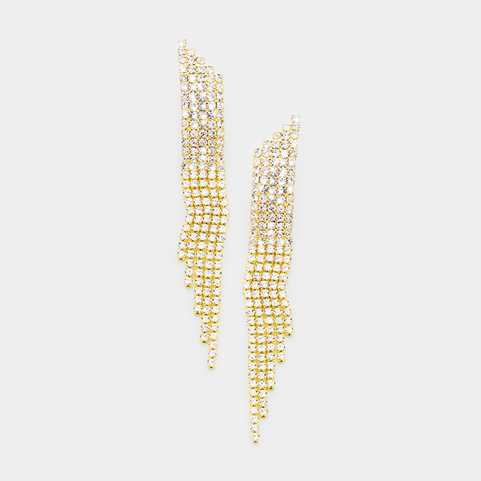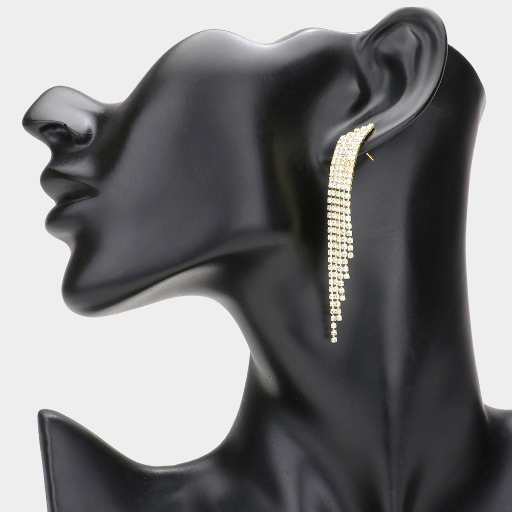 Emerald Cut Stone Accented Rhinestone Fringe Dangle Evening Earrings