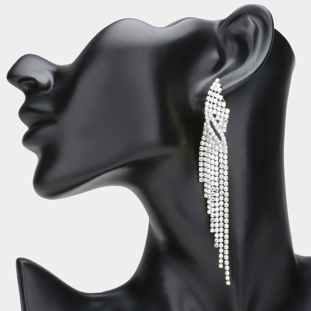 Rhinestone Fringe Dangle Evening Earrings