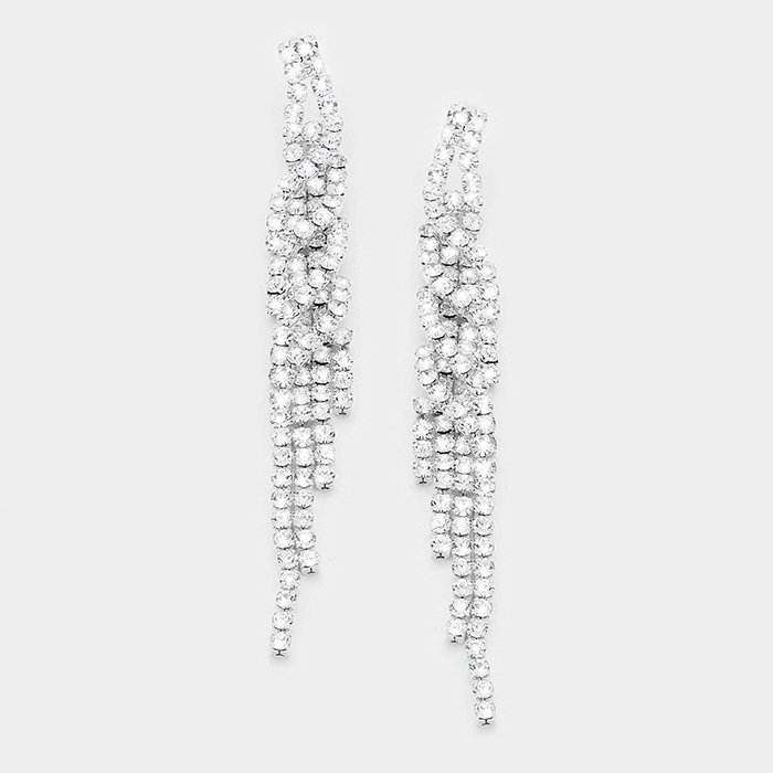 Rhinestone Paved Fringe Dropdown Evening Earrings