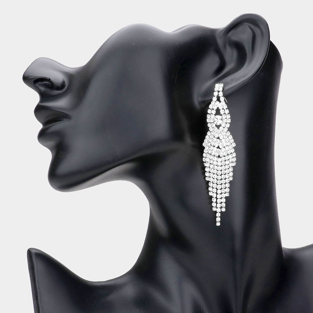 Rhinestone Crystal Pave Rhombus Evening Earrings