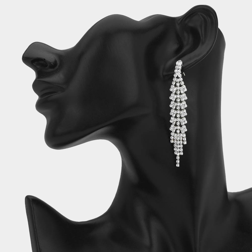 Rhinestone Pave Fringe Drop Evening Earrings