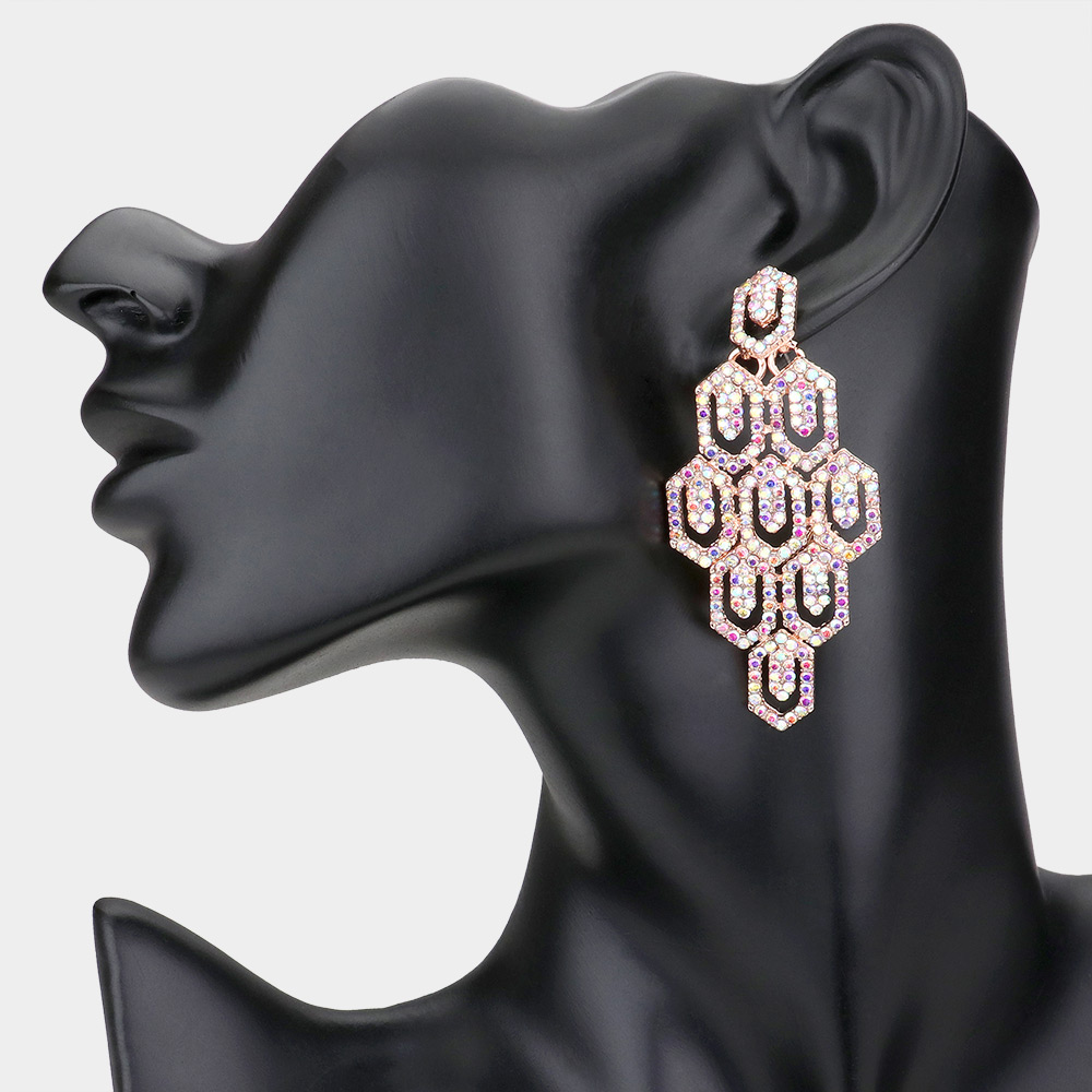 Rhinestone Pave Hexagon Link Statement Evening Earrings