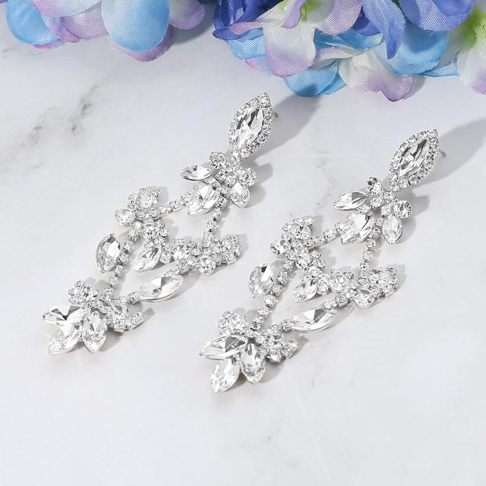Details • Size : 1" X 3" • Post Back • Add a touch of refined glamour with these floral vine drop earrings featuring shimmering crystals in an intricate leafy design. Perfect for weddings, evening events, or elegant occasions, they capture timeless sophistication with radiant brilliance and graceful charm.