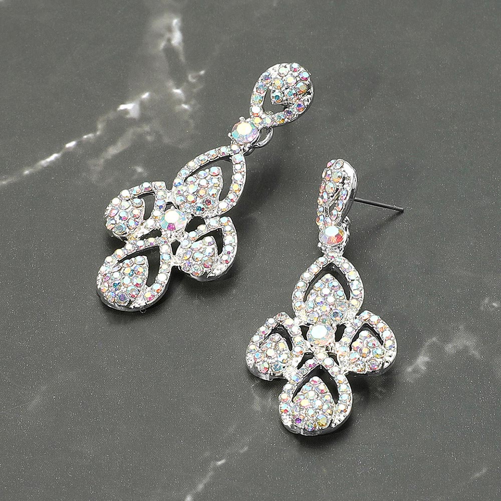 • Sparkling crystal pave floral drop earrings with an elegant open-petal design. Ideal for weddings, parties, and formal occasions, adding a glamorous touch to any ensemble.