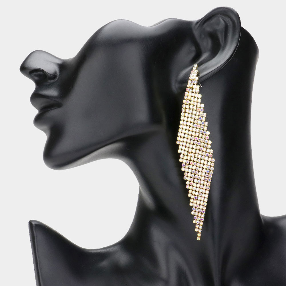 Marquise Teardrop Stone Accented Rhinestone Paved Dangle Evening Earrings