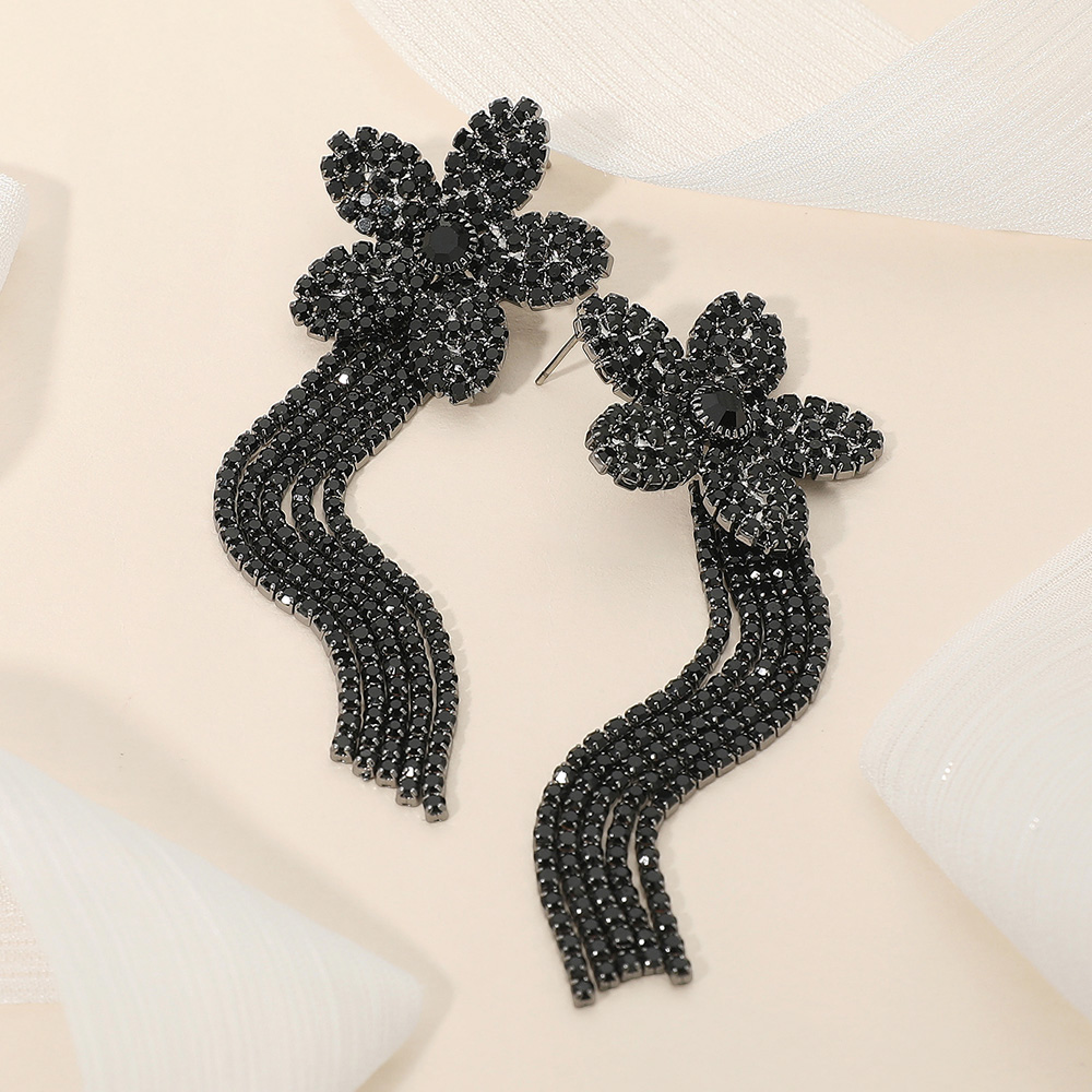 Rhinestone Paved Flower Fringe Evening Earrings