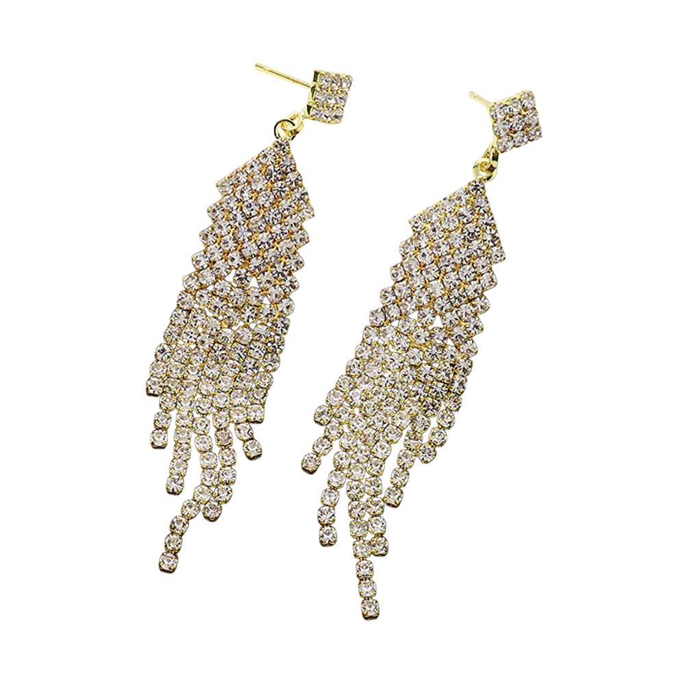 Rhinestone Paved Fringe Chandelier Dangle Evening Earrings