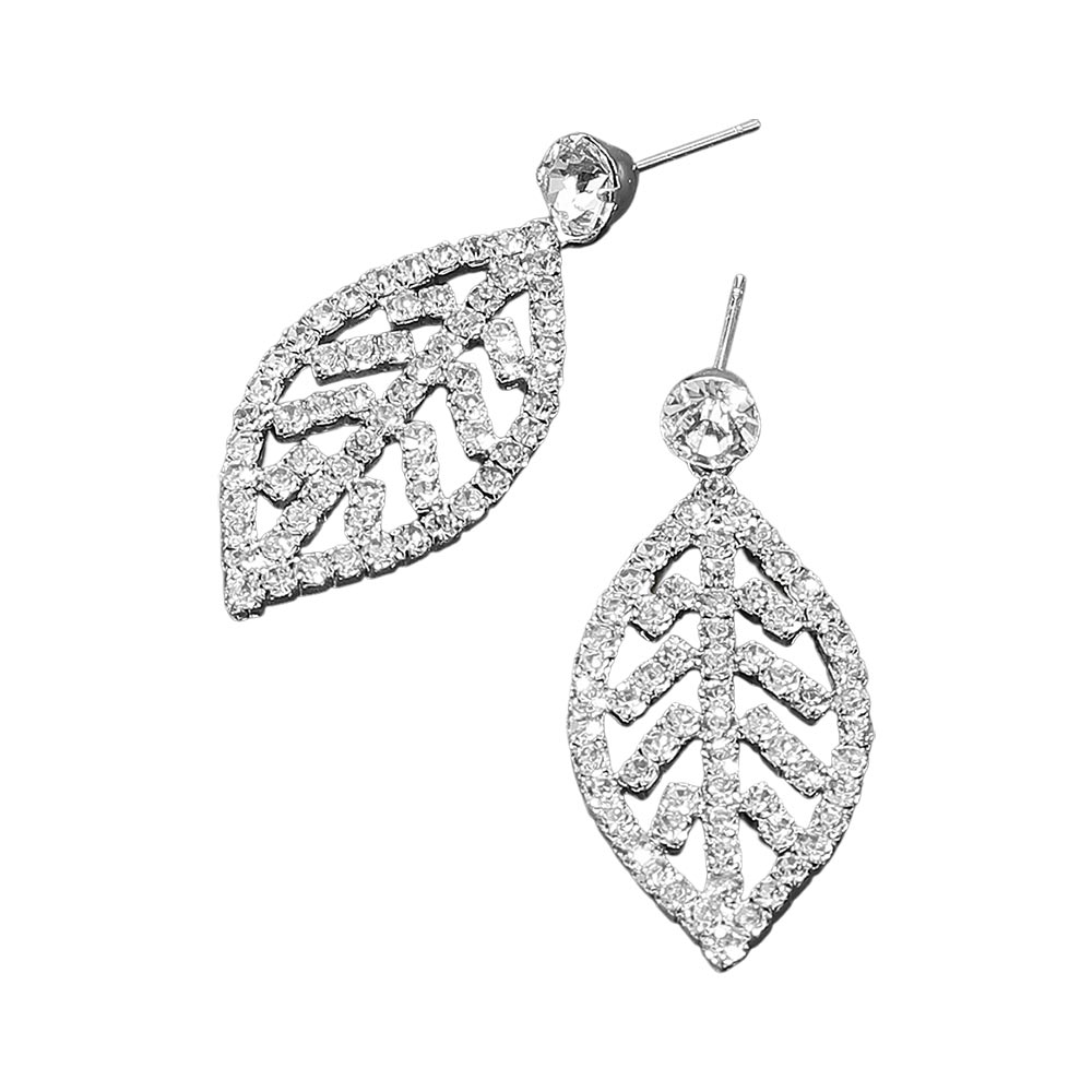 • Dazzling crystal leaf drop earrings featuring an intricate openwork design. Ideal for adding a nature-inspired sparkle to evening outfits, special events, or elegant celebrations.