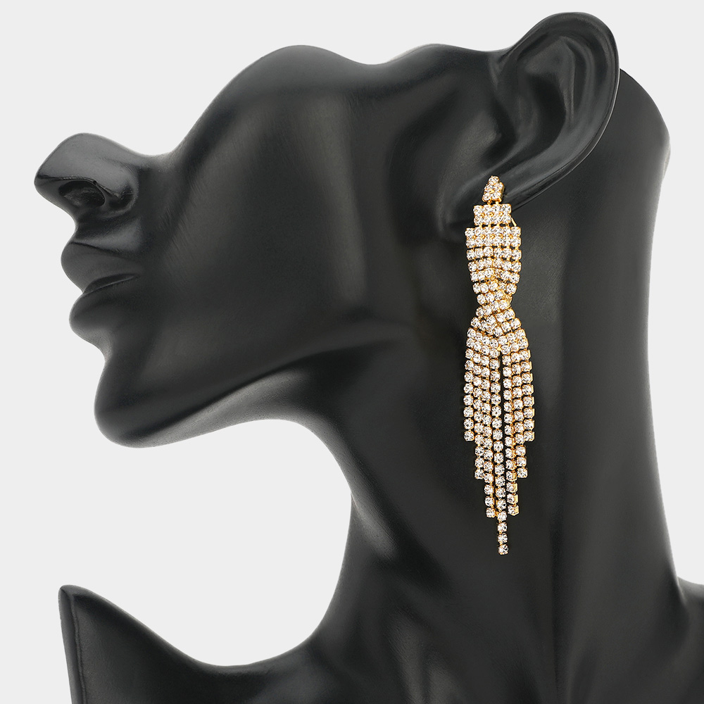 Details • Size : 0.7" X 3.25" • Post Back • Glamorous long rhinestone tassel drop earrings featuring cascading strands that create dramatic movement and sparkling shine. Their bold silhouette makes them perfect for evening events, parties, formal occasions, or elevating any outfit with a high-impact, elegant statement look. • Lead and Nickel Compliant
