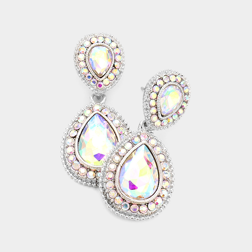 Rectangular Glass Stone Cluster Dangle Evening Earrings