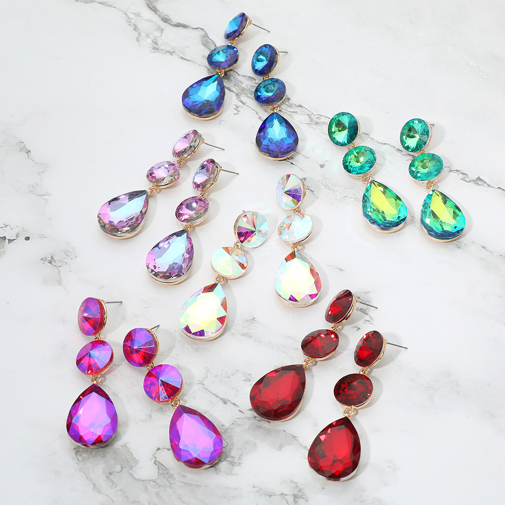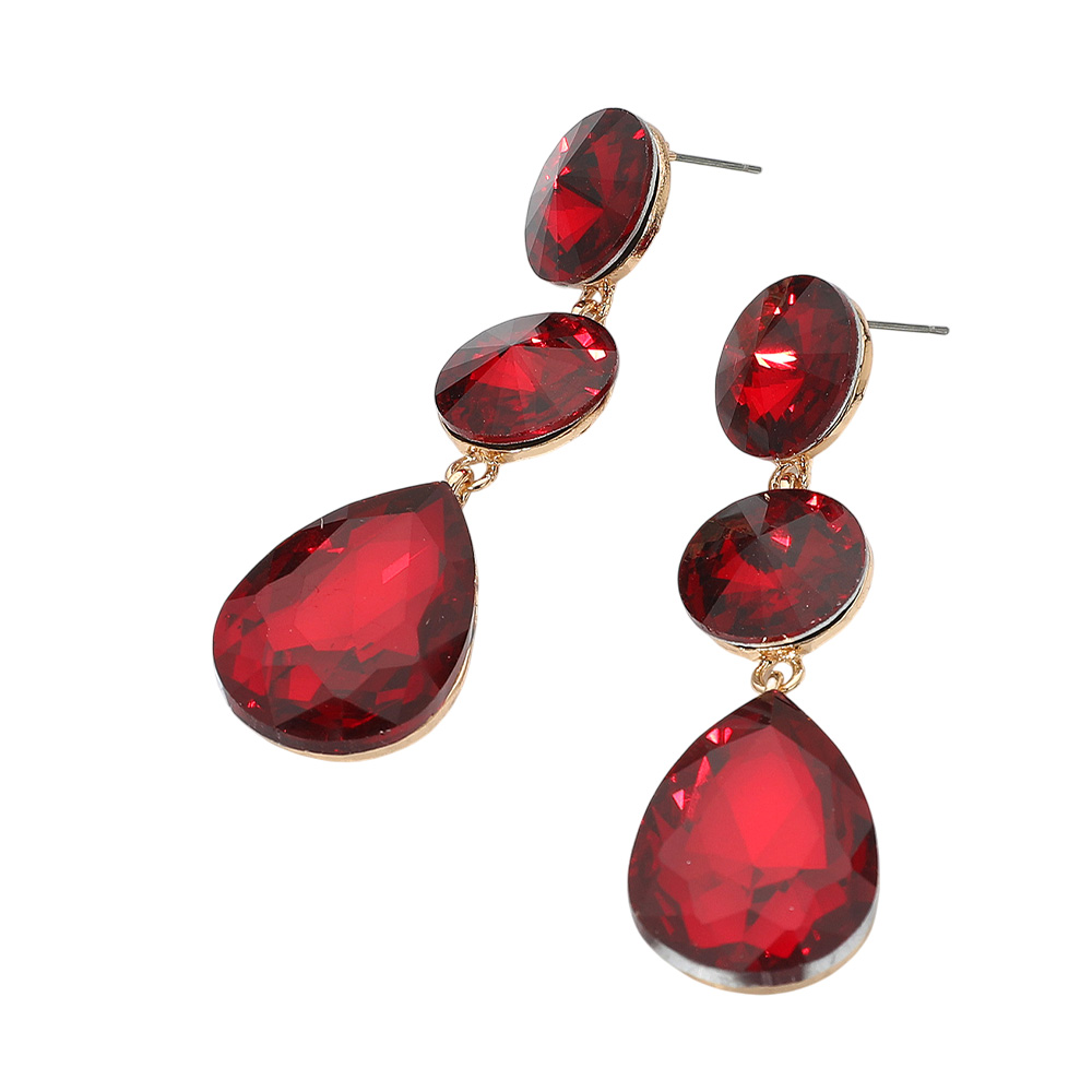 • Bold teardrop dangle earrings with faceted stones and round stud accents. Designed for a striking, glamorous touch, these earrings are ideal for evening events, weddings, or adding sparkle to any special occasion.