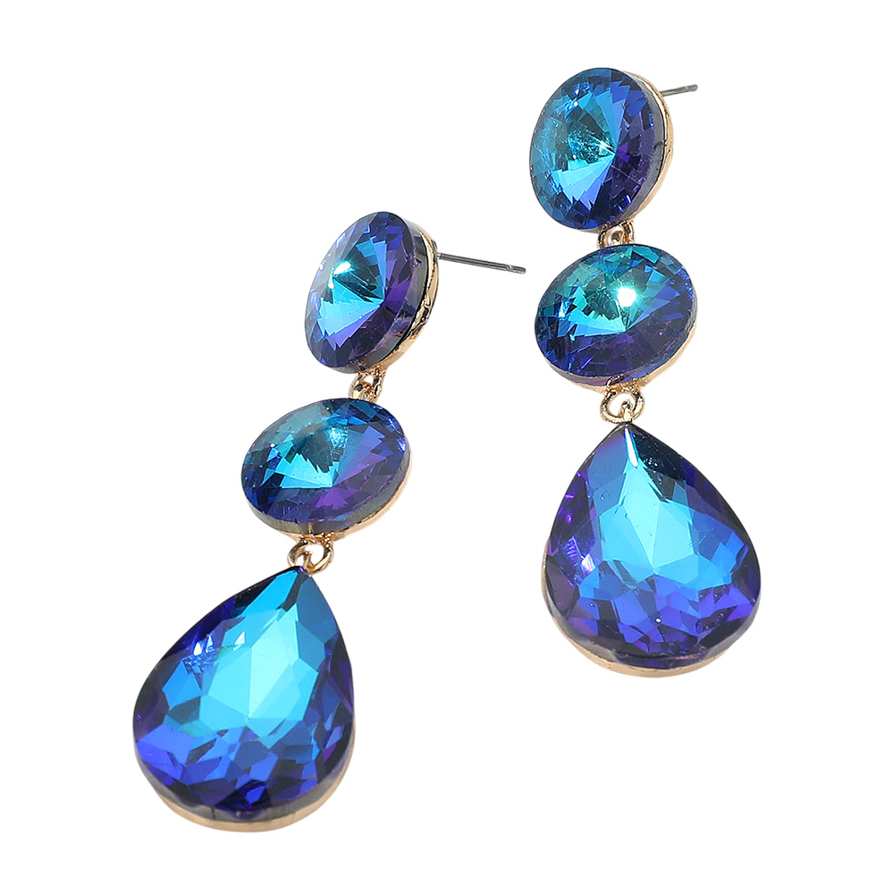 Details • Size : 0.8" X 2.8" • Post Back • Bold teardrop dangle earrings with faceted stones and round stud accents. Designed for a striking, glamorous touch, these earrings are ideal for evening events, weddings, or adding sparkle to any special occasion. • Lead and Nickel Compliant