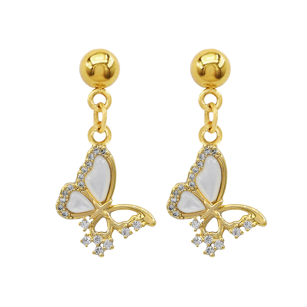 Details • Size : 0.75" X 1.1" • Post Back • Charming butterfly drop earrings adorned with sparkling CZ accents. A graceful and feminine accessory perfect for adding elegance and whimsical beauty to both casual and dressy outfits. • Lead and Nickel Compliant • CZ Cubic Zirconia • Stainless Steel