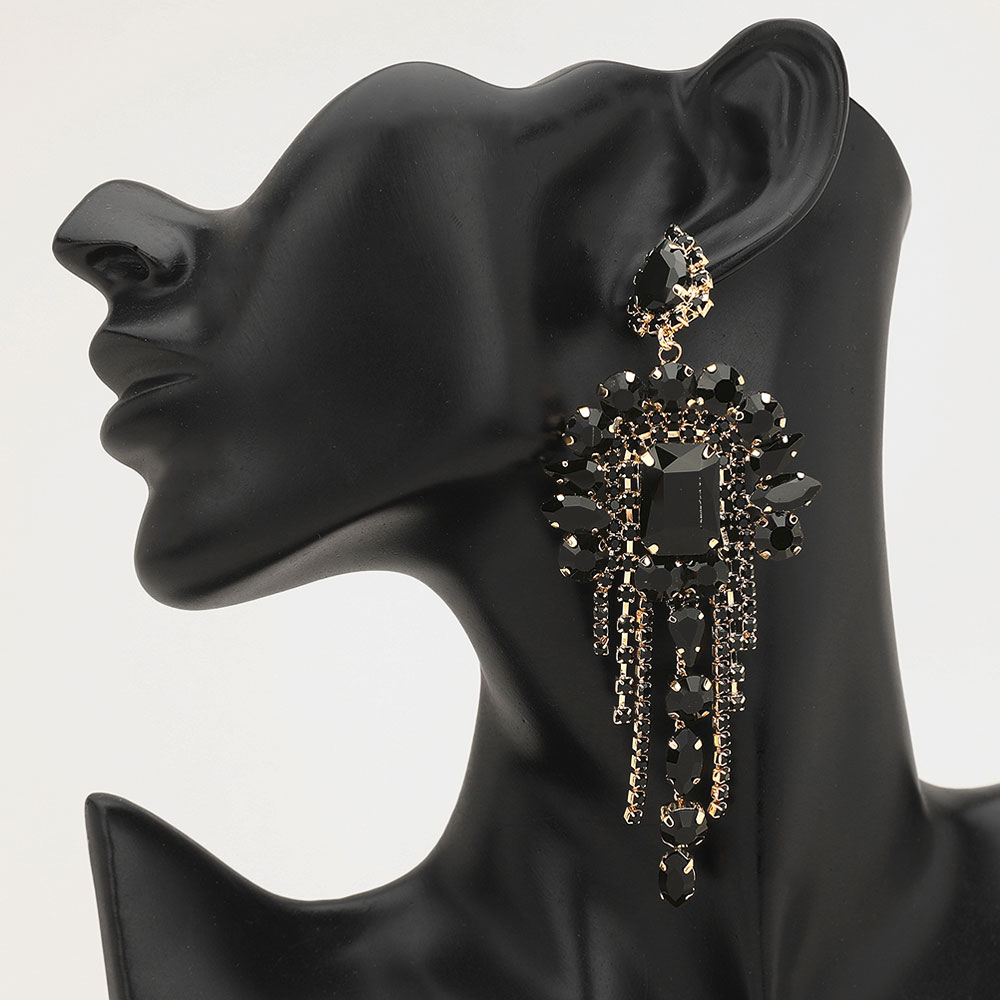 Stone Cluster Chandelier Fringe Drop Evening Statement Earrings