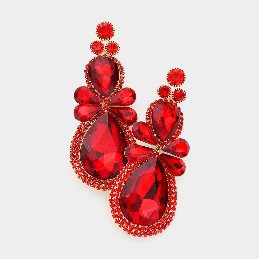 Oversized Glass Stone Embellished Diamond Frame Chandelier Evening Earrings