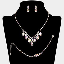 Triple Round Stone Teardrop Link Dangle Evening Earrings