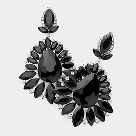 Teardrop Center Marquise Stone Cluster Evening Earrings