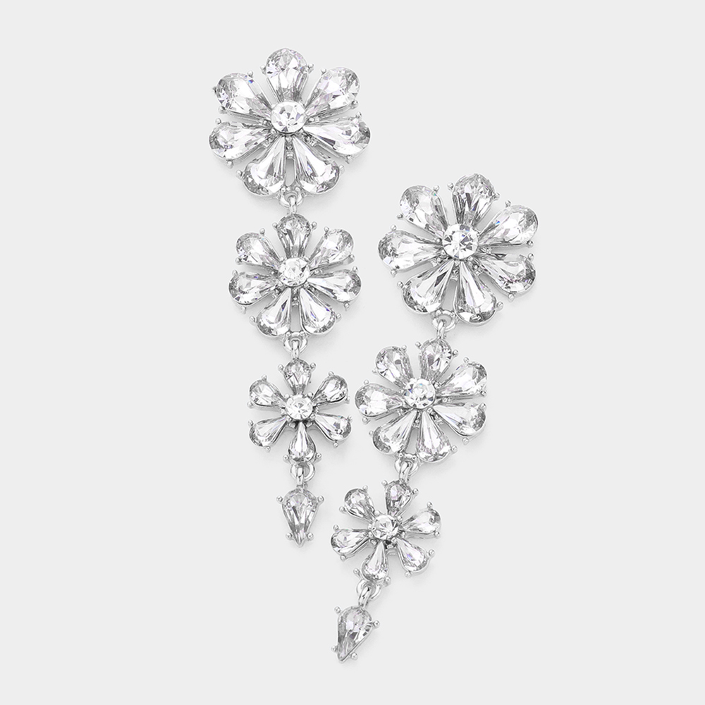 Teardrop Cluster Triple Flower Link Dangle Evening Earrings