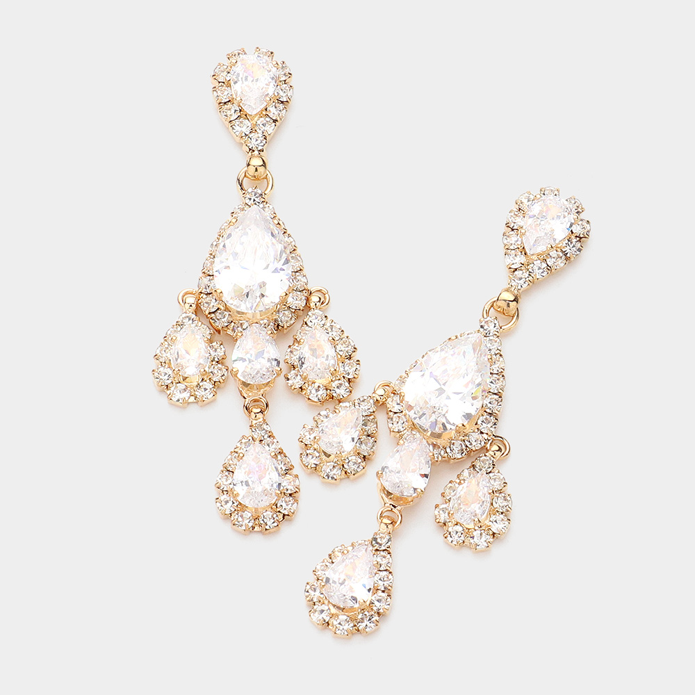 Teardrop CZ Stone Accented Chandelier Evening Dangle Earrings
