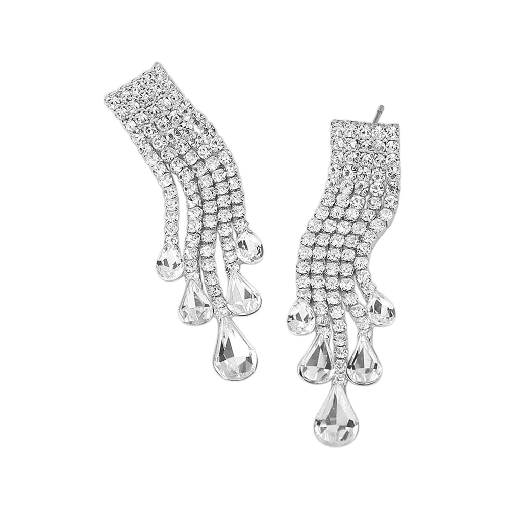 Teardrop CZ Stone Tip Fringe Evening Earrings