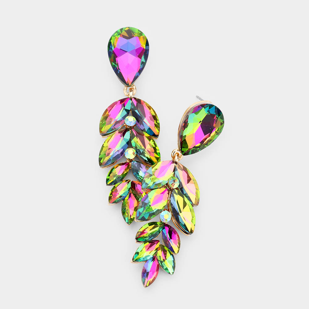Teardrop Crystal Rhinestone Floral Vine Evening Necklace