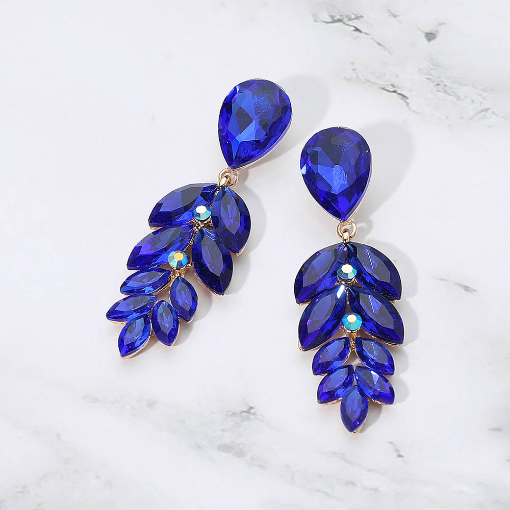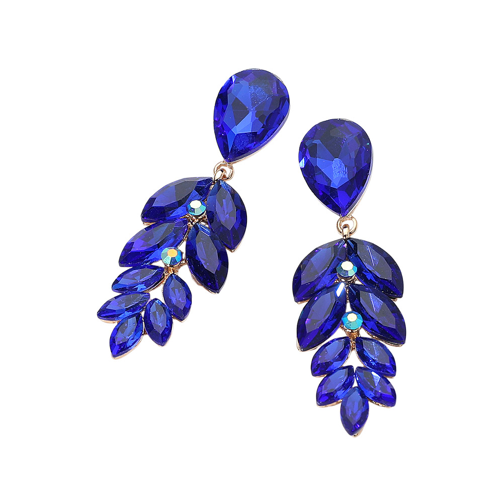 • Elegant drop earrings featuring a teardrop top and cascading marquise-cut stones arranged in a leaf-inspired silhouette. Light-catching and refined, these statement earrings add a glamorous finishing touch to evening outfits or special occasions.