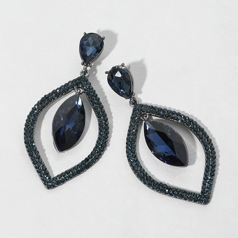 Teardrop Marquise Stone Accented Dangle Evening Earrings
