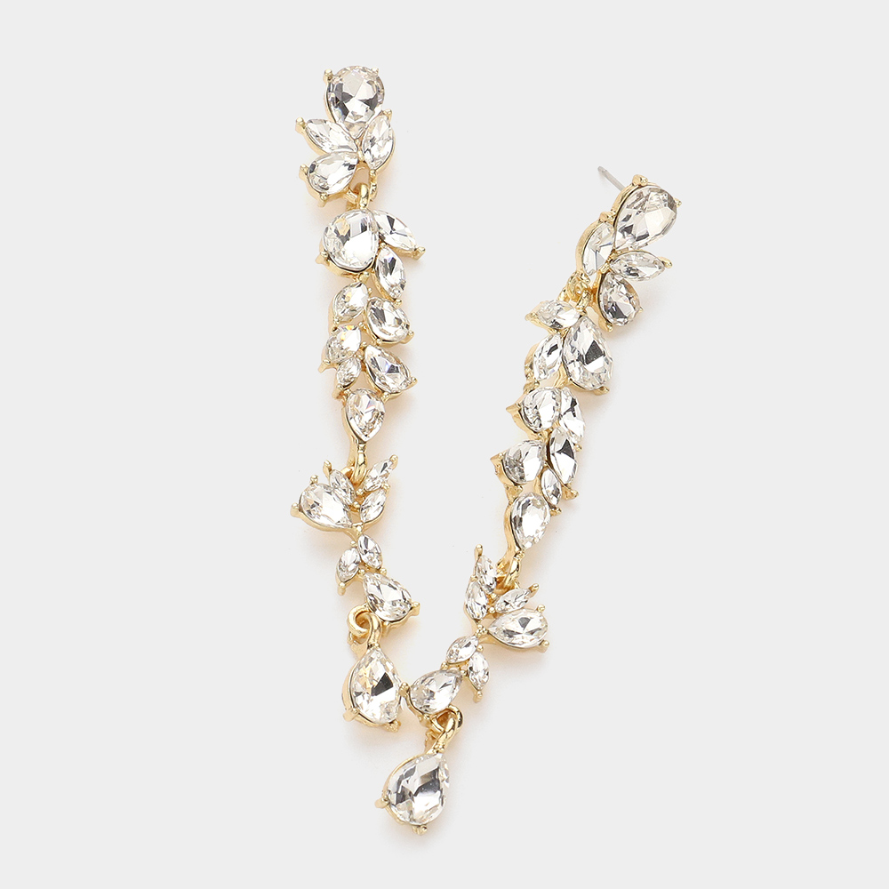 Teardrop Marquise Stone Cluster Embellished Dropdown Evening Earrings