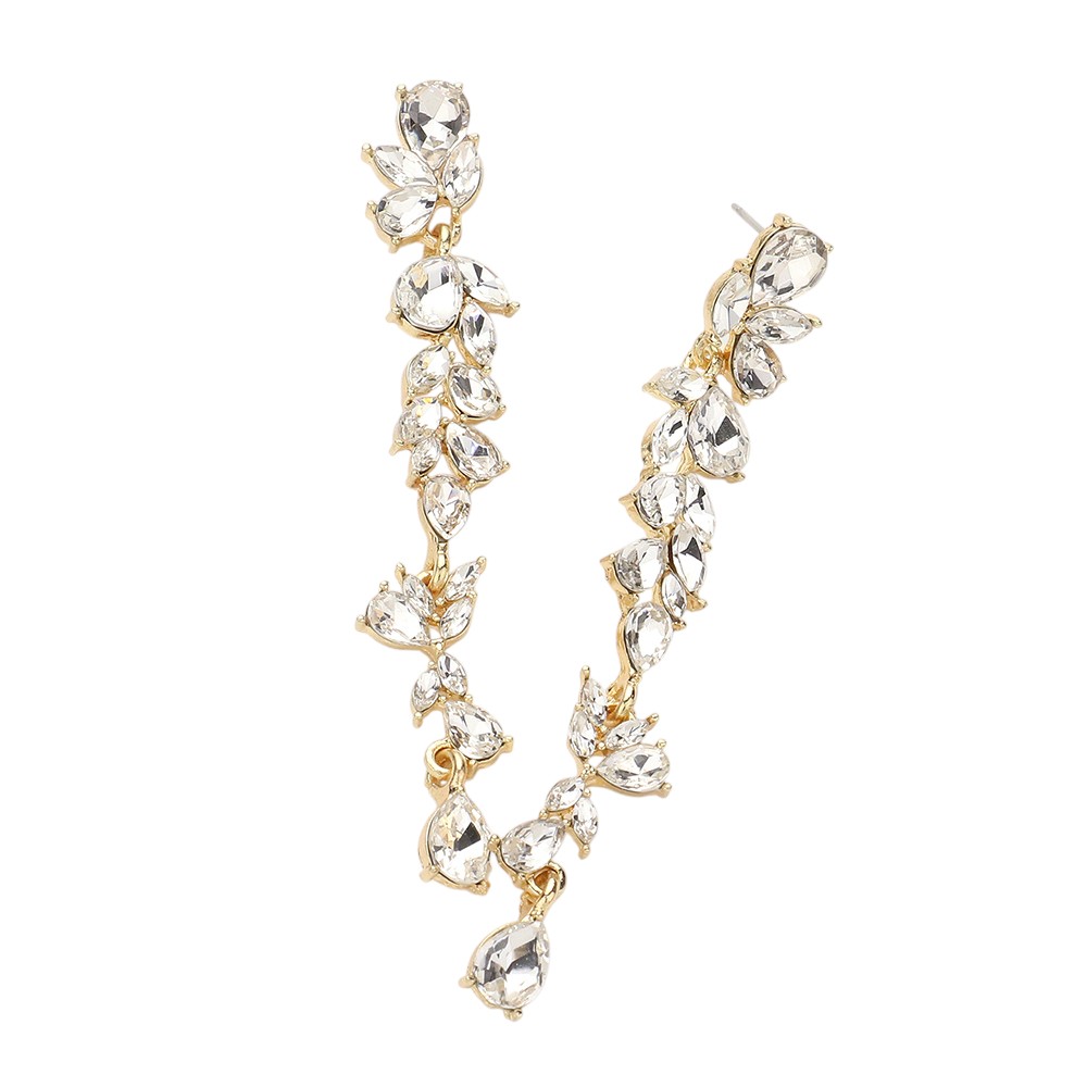 Teardrop Marquise Stone Cluster Embellished Dropdown Evening Earrings Teardrop Marquise Stone Cluster Embellished Dropdown Evening Earrings