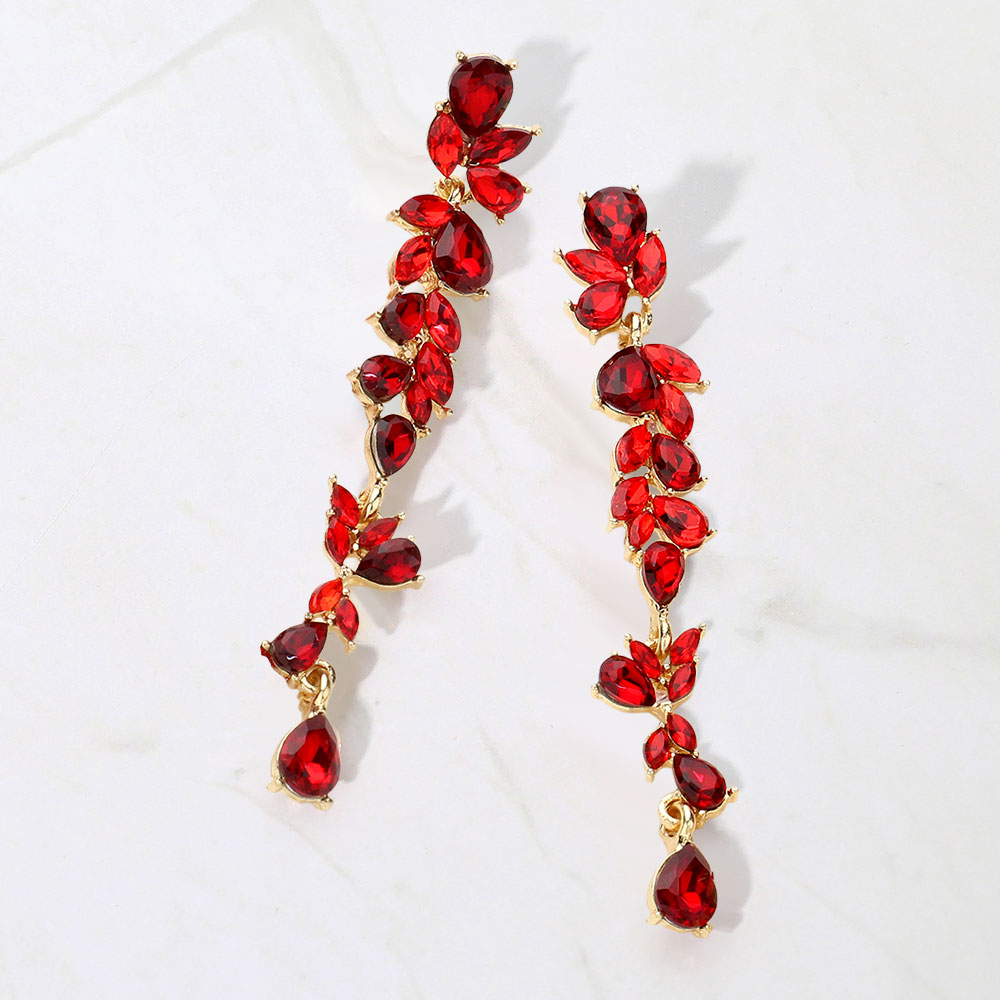 • These iridescent leaf drop earrings feature a cascading design of marquise and teardrop crystals that shimmer beautifully from every angle. Lightweight yet eye-catching, they bring a luminous touch to any outfit, making them ideal for special occasions or elegant evening wear.