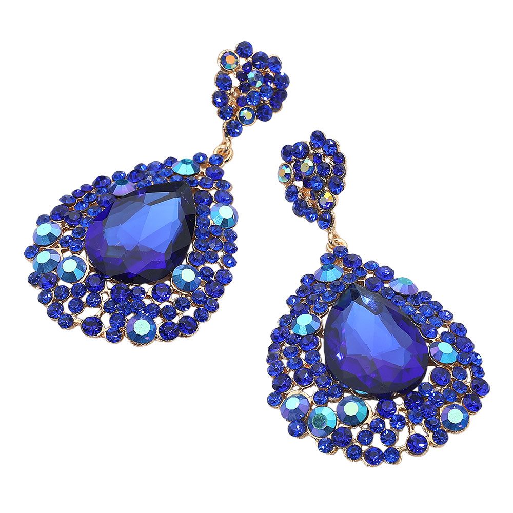 Details • Size : 1.75" X 3" • Post Back • Turn heads with these bold teardrop statement earrings featuring a dramatic faceted design that exudes elegance and confidence. Perfect for formal occasions, parties, or night outs, these earrings add a touch of glamour and sophistication to any chic ensemble. • Lead and Nickel Compliant