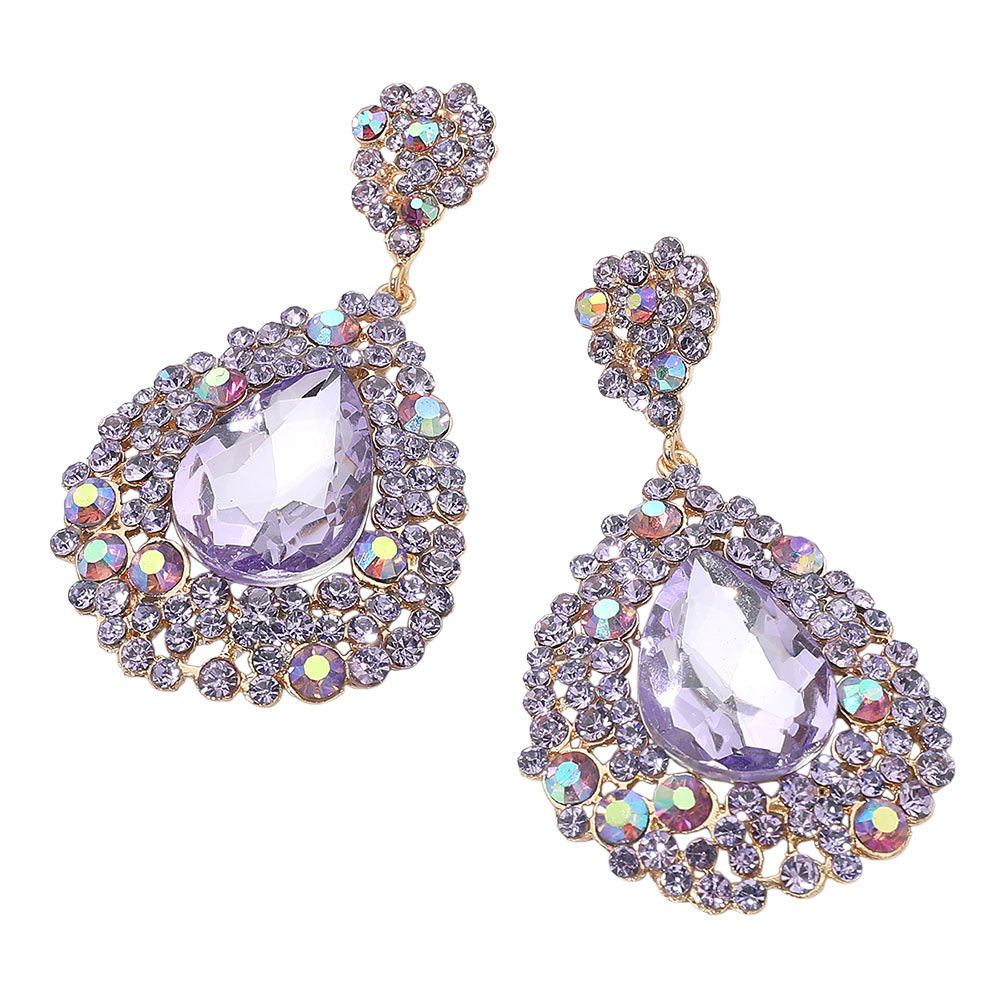 Teardrop Pointed Rhinestone Embellished Dangle Evening Earrings Teardrop Pointed Rhinestone Embellished Dangle Evening Earrings