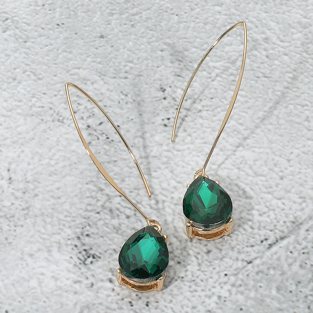 • Add refined style to your look with these teardrop dangle earrings featuring a sleek hook design and faceted gemstone accent. Perfect for both casual wear and special occasions.