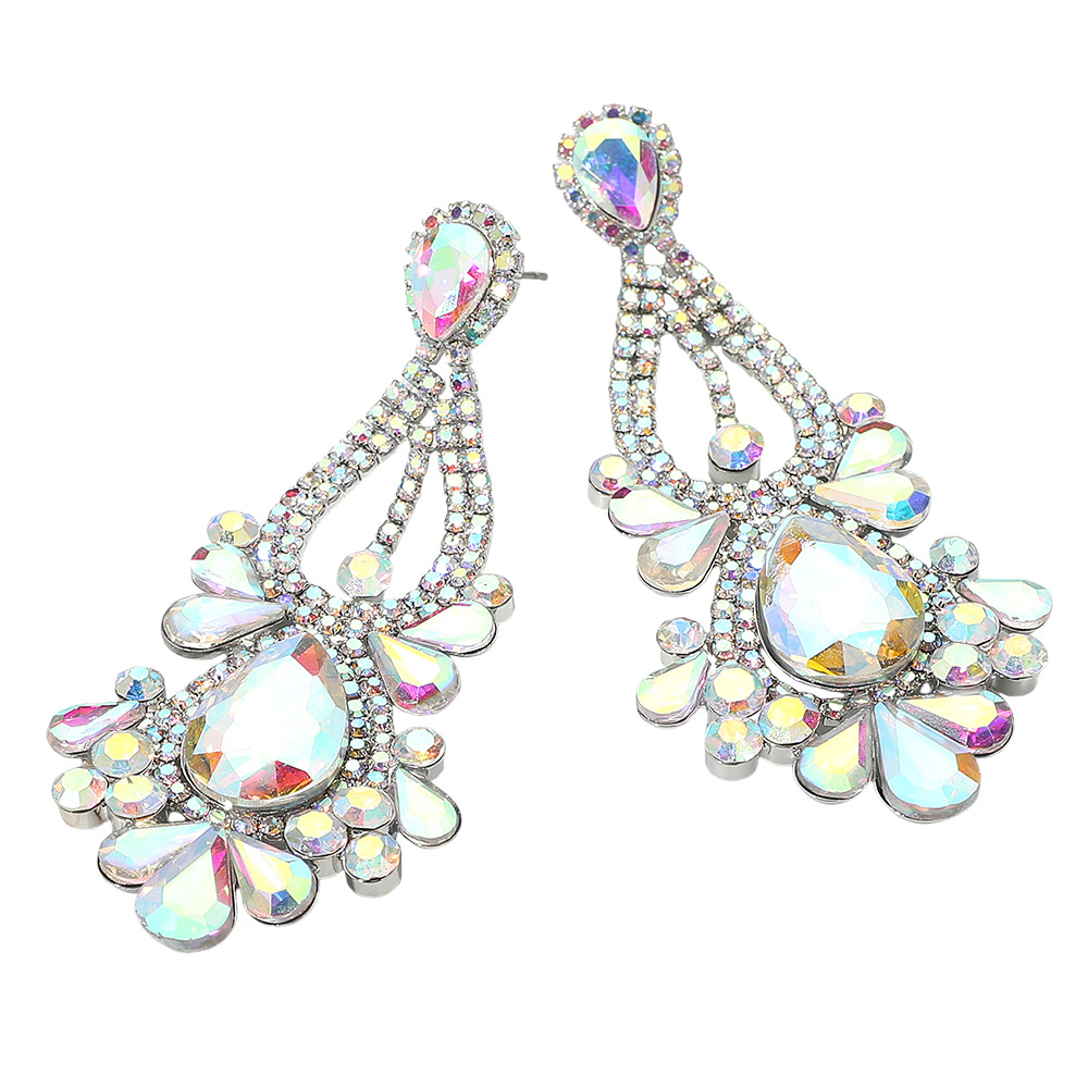 • Turn heads with these iridescent teardrop statement earrings, featuring a dazzling arrangement of shimmering stones and intricate detailing. Perfect for parties, weddings, and glamorous occasions, these earrings add a bold touch of sparkle and sophistication to any elegant look.