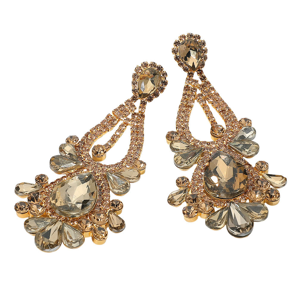 Teardrop Stone Cluster Statement Evening Earrings Teardrop Stone Cluster Statement Evening Earrings