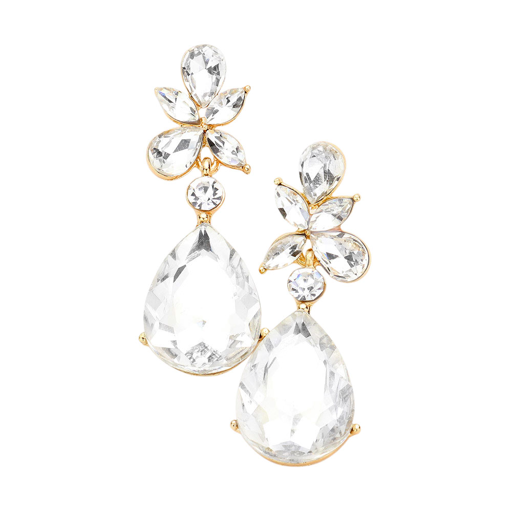 • Make a striking impression with these faceted teardrop statement earrings. Featuring bold, multi-cut stones arranged in a floral-inspired design, they capture light beautifully for a refined yet dramatic finish—perfect for evening wear or elevating any special occasion look.