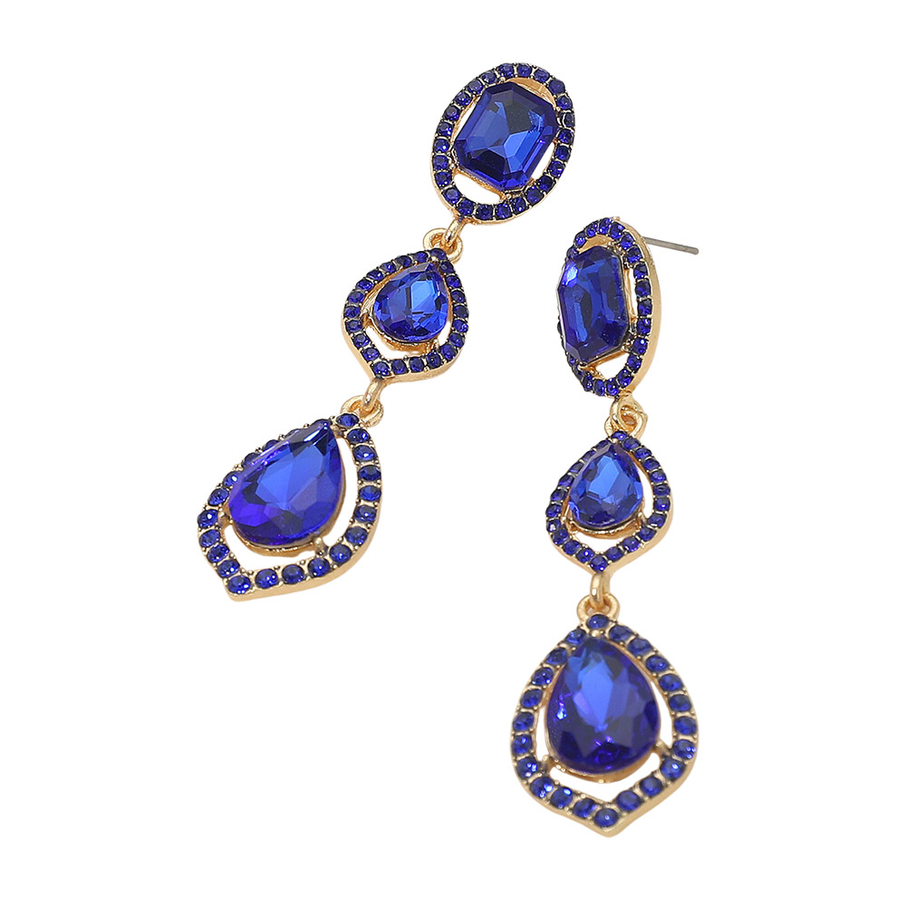 Teardrop Stone Pointed Dropdown Dangle Evening Earrings