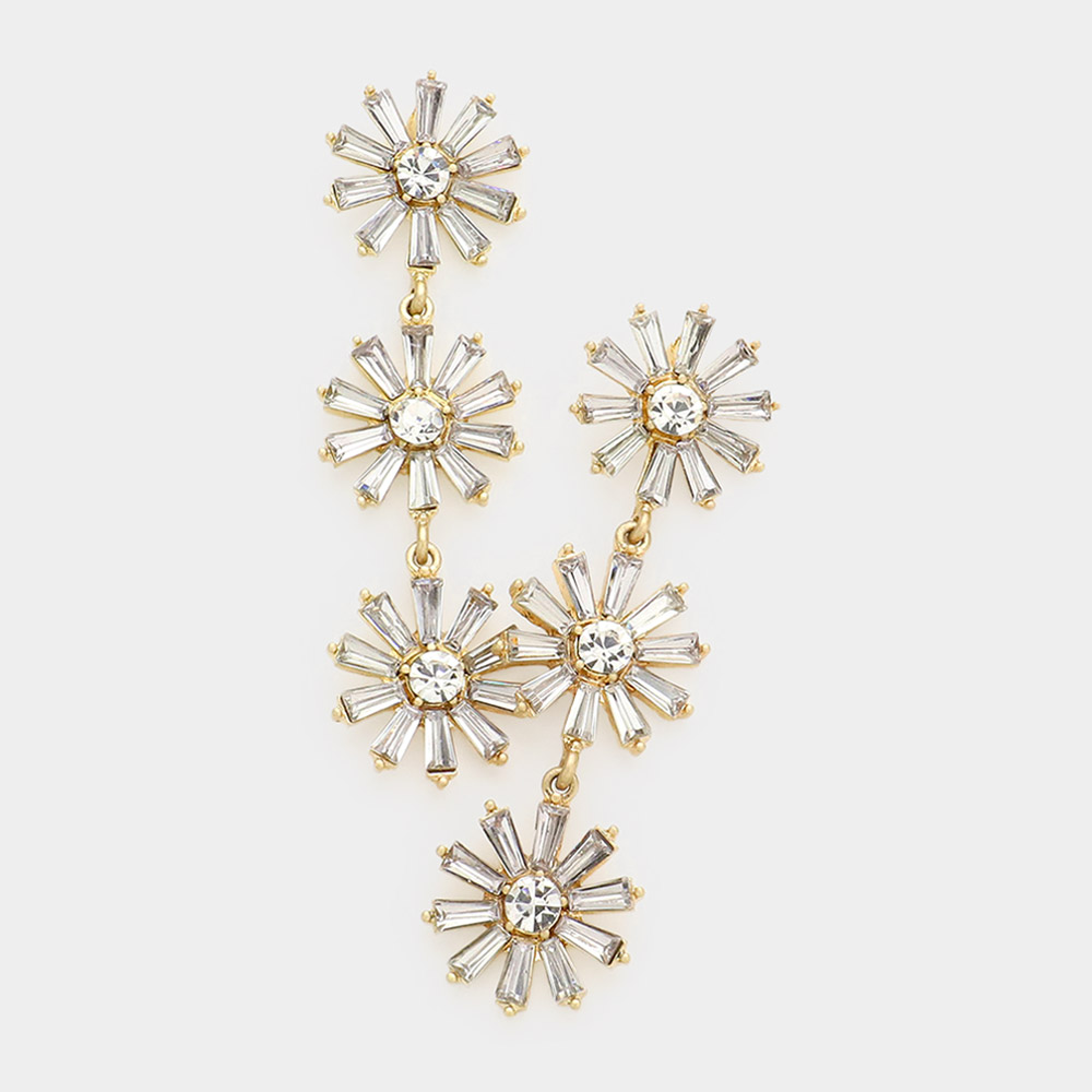 Pearl Embellished Teardrop Stone Accented Flower Stretch Ring