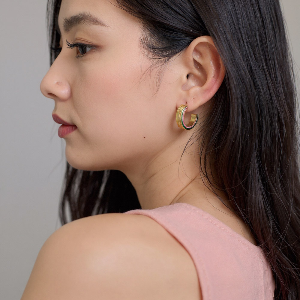 • Vibrant enamel hoop earrings designed with a multicolor finish for a playful yet refined touch. Lightweight and stylish, these hoops add a pop of personality to any look, making them the perfect accessory for both casual wear and statement outfits.