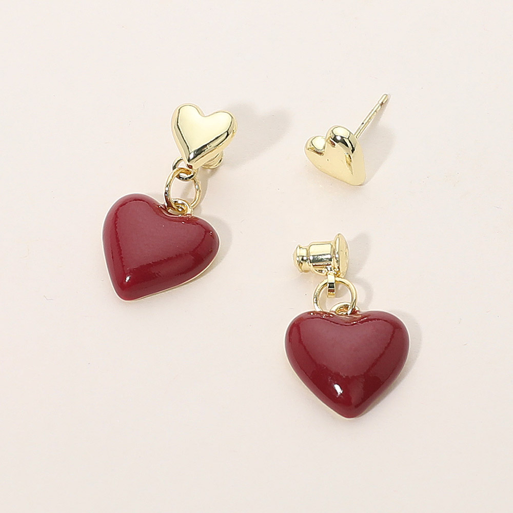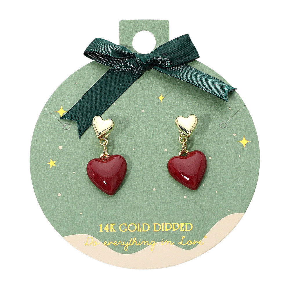Details • Size : 0.6" X 1" • Post Back • Sweet heart drop stud earrings featuring a petite heart post with a matching dangling charm for a playful, romantic touch. The removable design allows two styling options—wear as simple studs or as full drop earrings. A charming accessory for gifting, daily wear, date nights, or special occasions. • Lead and Nickel Compliant • Hypoallergenic • Made In Korea • Gold Dipped