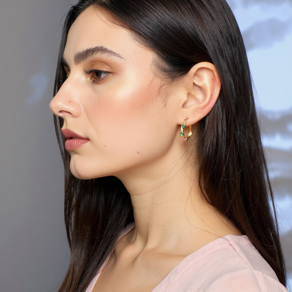 Details • Size : 0.8" X 0.8" X 0.2" • Post Back • Chic enamel hoop earrings with a unique twisted design, blending playful pops of color with a refined finish. Lightweight and stylish, they add a bold yet elegant accent to any outfit, making them the perfect choice for both everyday wear and statement styling. • Brass • Gold Dipped • Hypoallergenic • Lead and Nickel Compliant • Made In Korea