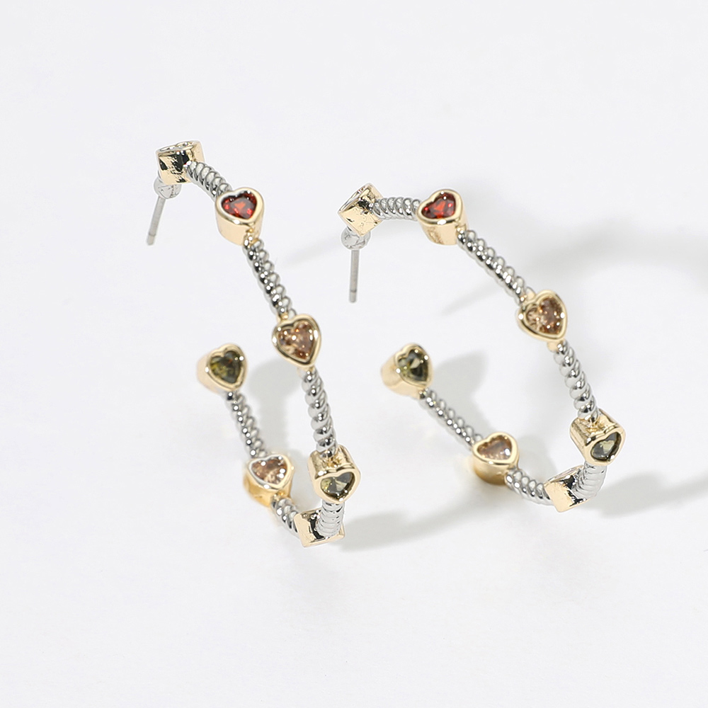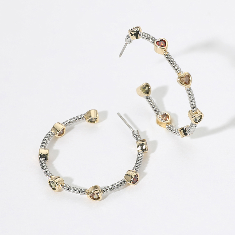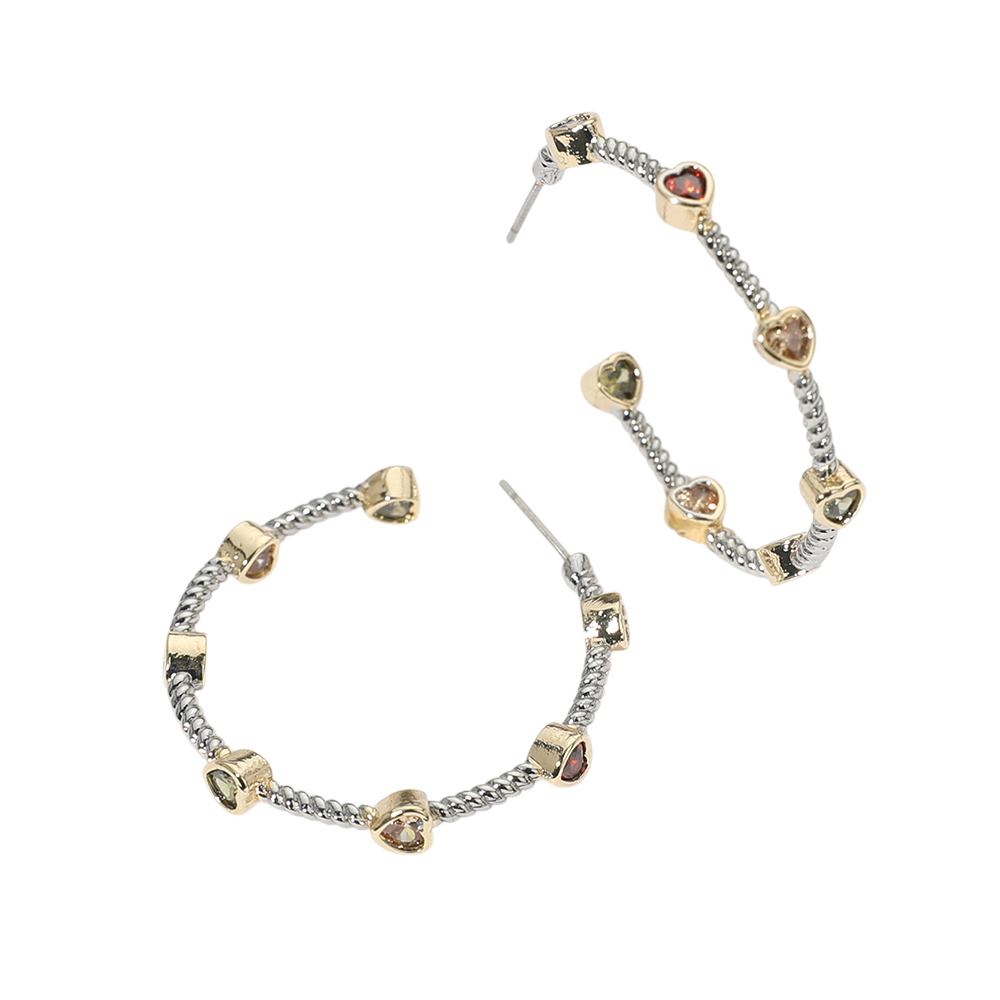14K Gold Plated Colorful CZ Heart Stone Cluster Hoop Earrings