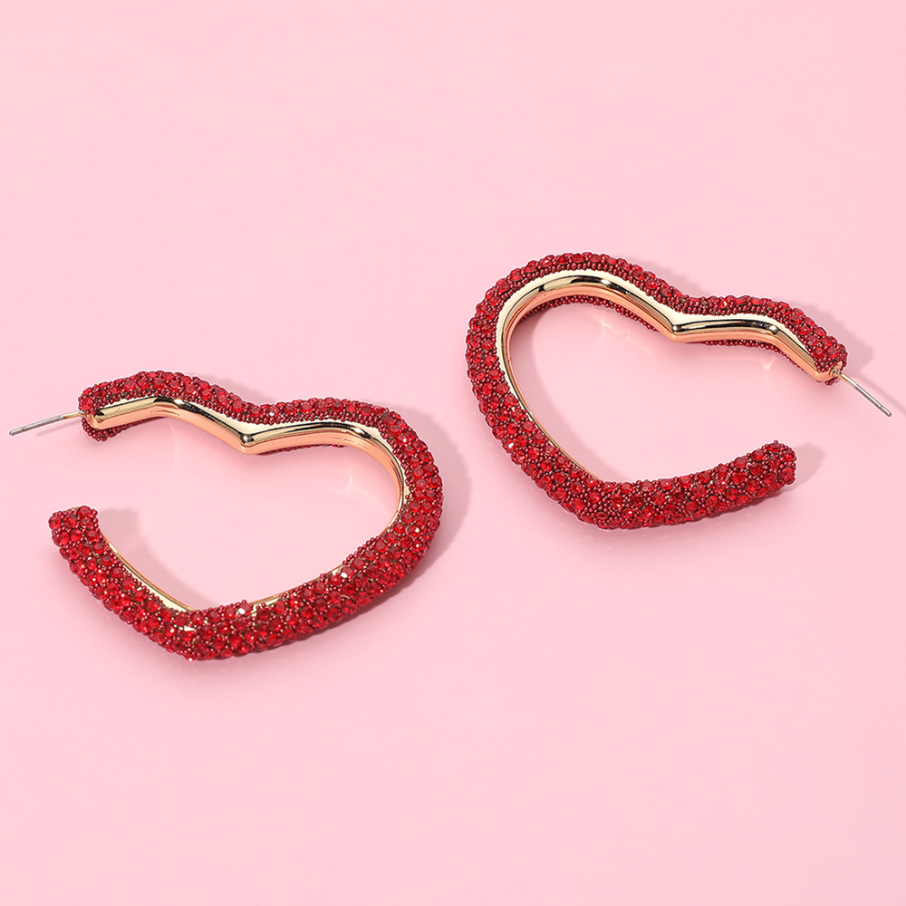 18K Gold Dipped Rhinestone Studded Heart Hoop Earrings