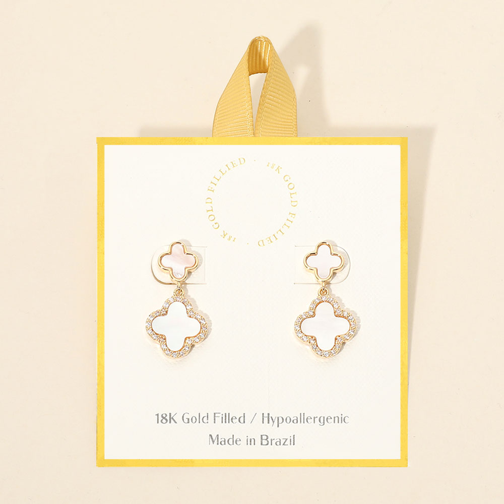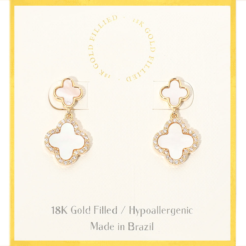 Details • Size : 0.6" X 1.2" • Post Back • Elegant quatrefoil drop stud earrings featuring a refined layered silhouette that adds graceful movement and timeless charm. Designed to elevate everyday outfits or special occasion looks, these earrings offer a balanced blend of classic style and modern appeal for effortless accessorizing. • Gold Filled • Hypoallergenic • Made In Brazil
