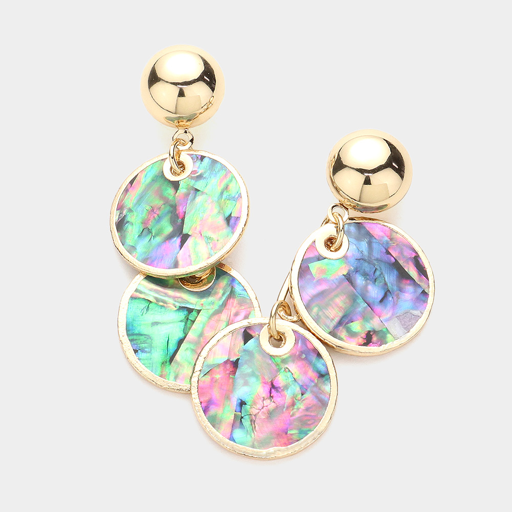 Wood Heishi Beaded Abalone Crescent Pendant Triple Layered Pendant Necklace