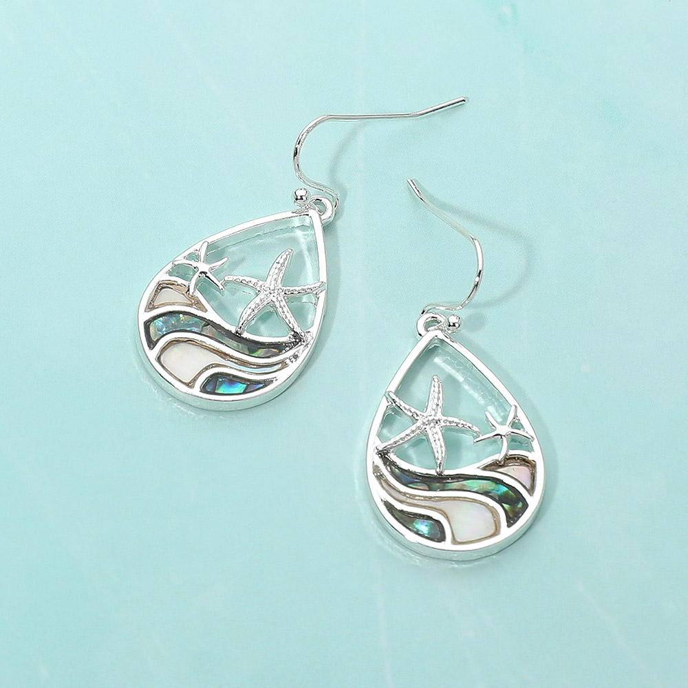 Abalone Starfish Wave Teardrop Dangle Earrings