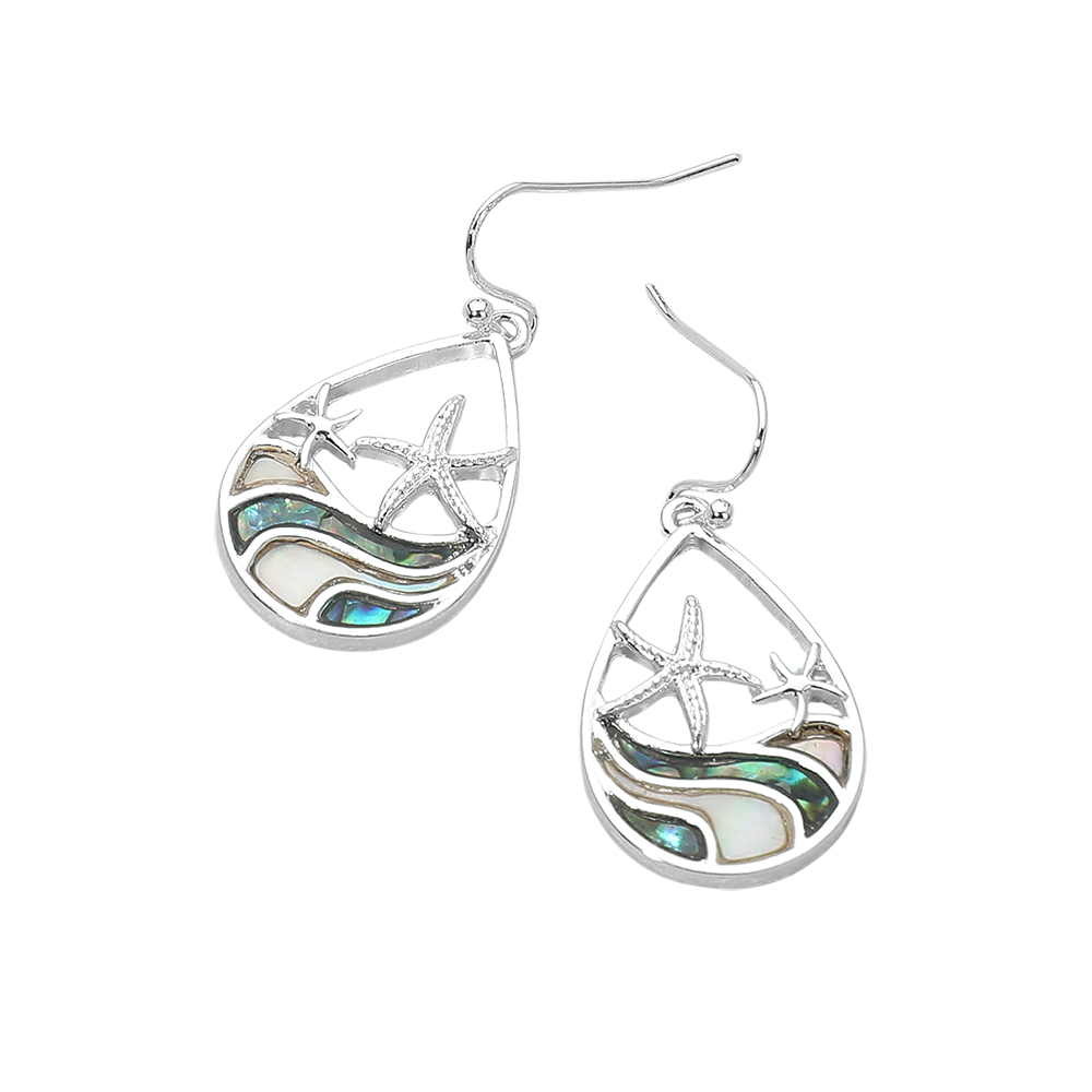 Abalone Starfish Wave Teardrop Dangle Earrings Abalone Starfish Wave Teardrop Dangle Earrings