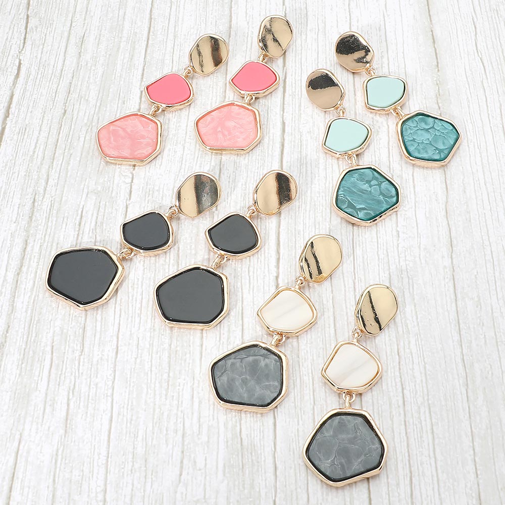 Details • Size : 1.25" X 3.5" • Post Back • These abstract geometric drop earrings feature bold, asymmetrical shapes that create a chic modern look. Their artistic design adds a touch of sophistication and versatility, perfect for enhancing both casual and evening outfits with effortless contemporary style. • Lead and Nickel Compliant