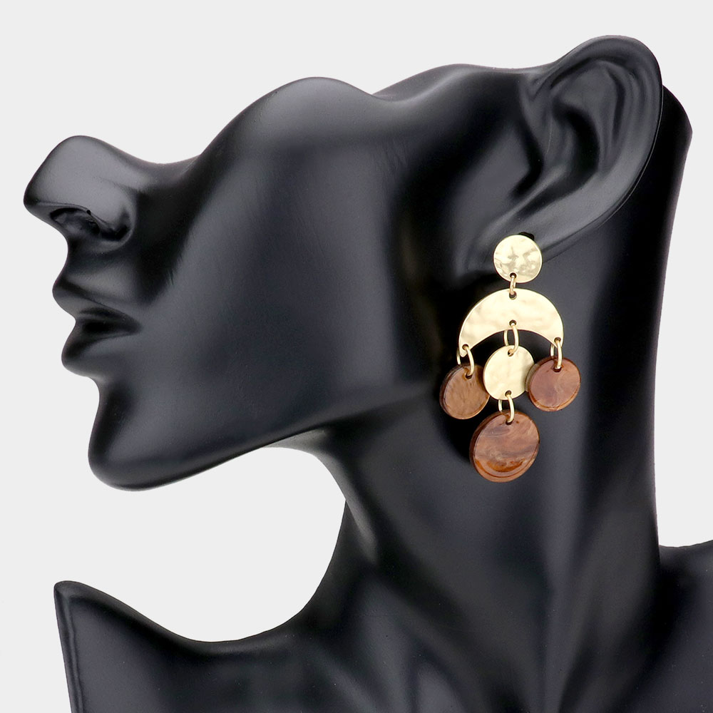 Abstract Hammered Metal Celluloid Acetate Link Dangle Earrings