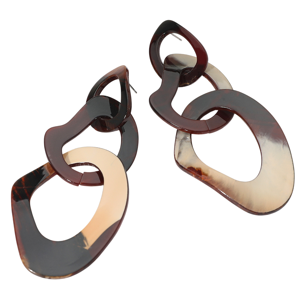 Abstract Patterned Resin Ring Link Drop Earrings Abstract Patterned Resin Ring Link Drop Earrings